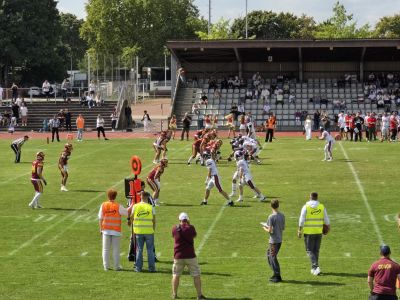 Für die große Überraschung hat es leider nicht gereicht. Die JuniorJets verlieren das Halbfinale gegen den starken Rekordmeister aus Düsseldorf am Ende deutlich mit 64:17. Das Ergebnis spiegelt nicht die bärenstarke Leistung der Jets-U20 in der ersten Hälfte wider. Zu Beginn stand es 3:0 für Troisdorf und zwischenzeitlich lagen die Jungs sogar mit 10:7 vorne.